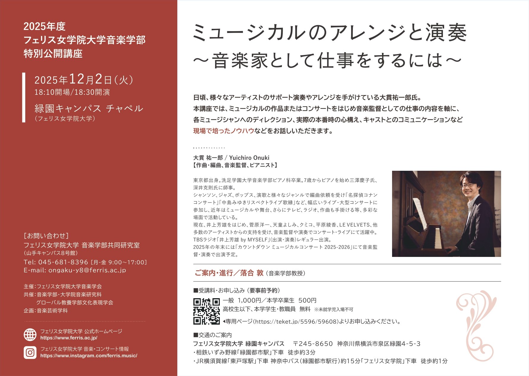 大学で行われる演奏会やイベント、学外での進学相談会など各種イベント情報をお知らせしています。