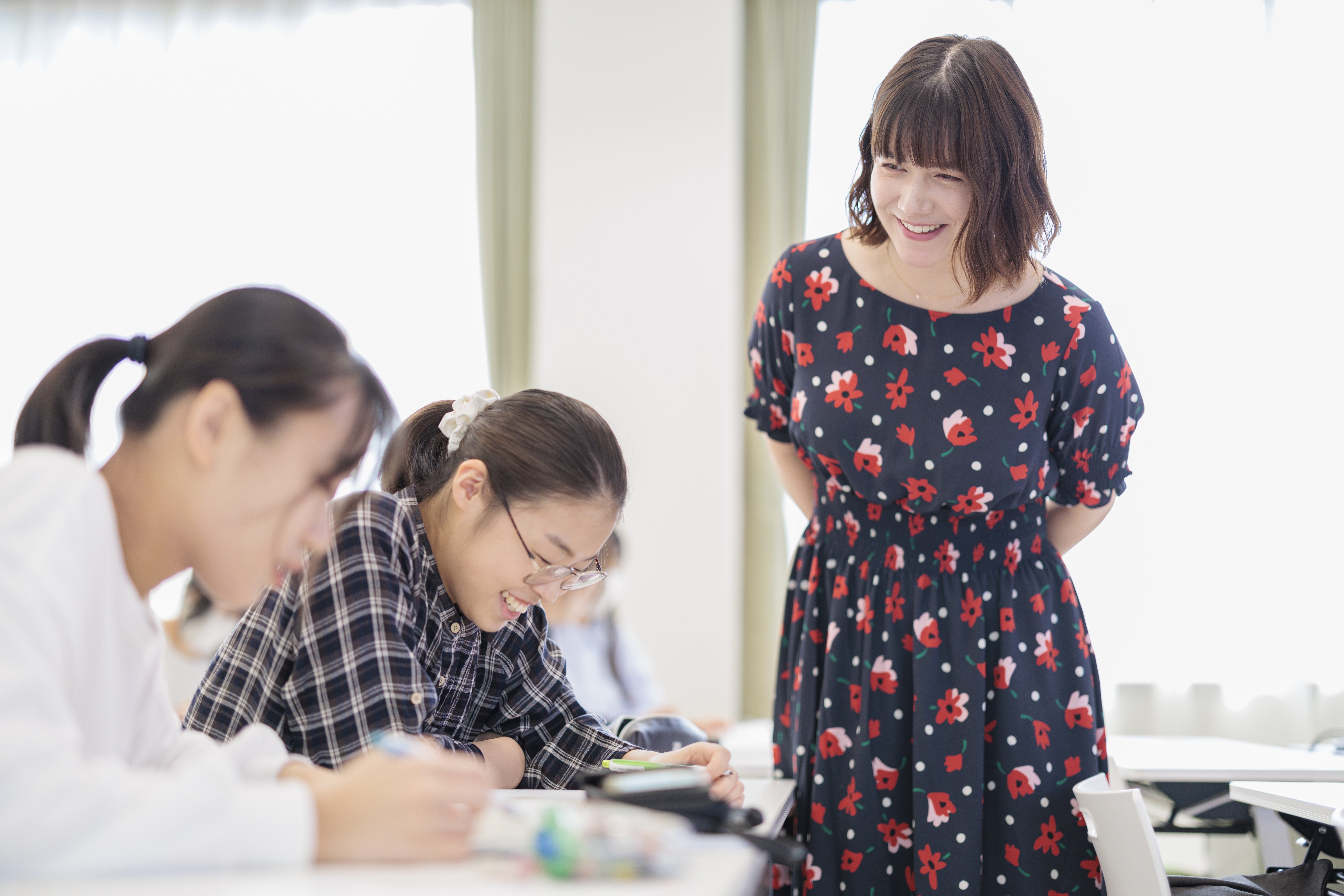 知識としての語学ではなく、発表やグループワークを多く取り入れ、実際に使える言語運用能力を身につけることを大切にしています。また、「聞く・話す・読む・書く」の4技能の経験を重ねることで、自信を持ってコミュニケーションできる実践力を磨きます。教員との距離も近く、きめ細やかなサポート体制を行っています。失敗を恐れず何度でも挑戦できる環境で、確かな成長へとつなげていくことができます。