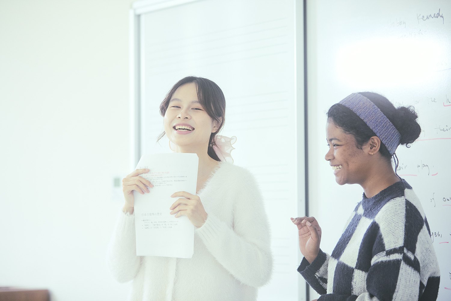 フェリスは、港町である国際都市・横浜を拠点に、国内外の多様な地域とつながる学びの場。国内提携大学とのネットワークを通じて、国内各地での幅広い学びの機会を提供しており、自身の目標や関心に応じて最適な環境を選ぶことができます。また、学生は語学力を磨き、日常的な国際交流を通じて多様な文化への理解を深めていきます。