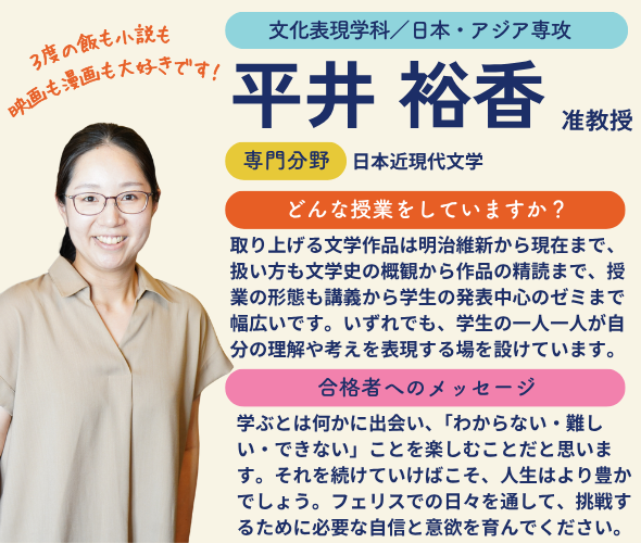 新しい学部では、自分の関心に従って、これまで以上に、自由に学びを組み立てることができます。得意なことを伸ばしていきましょう。そして、皆さんがそれぞれにとっての知の冒険に乗り出すことを期待しています。フェリス女学院大学は、様々な学びと経験のチャンスを準備し、みなさんの冒険を応援します。