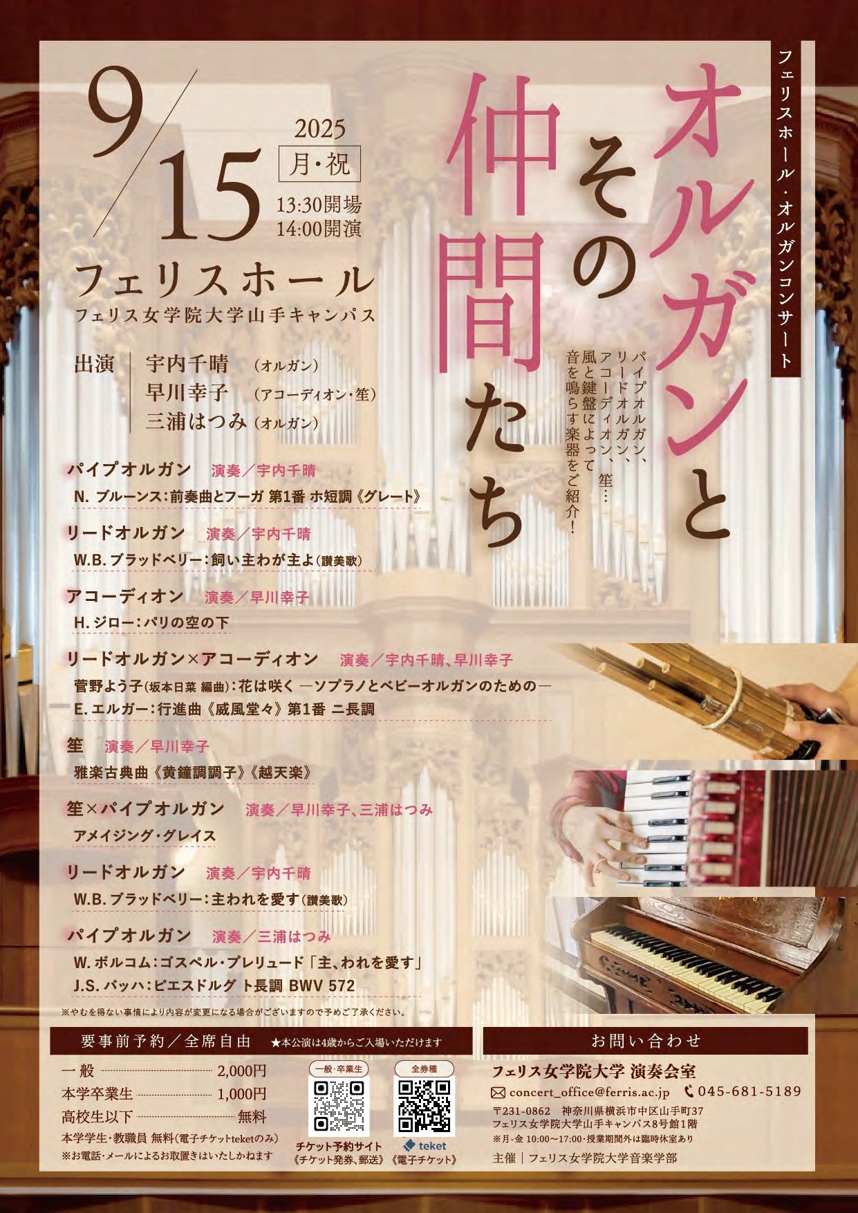 イベント[フェリスホール・オルガンコンサート] オルガンとその仲間たち