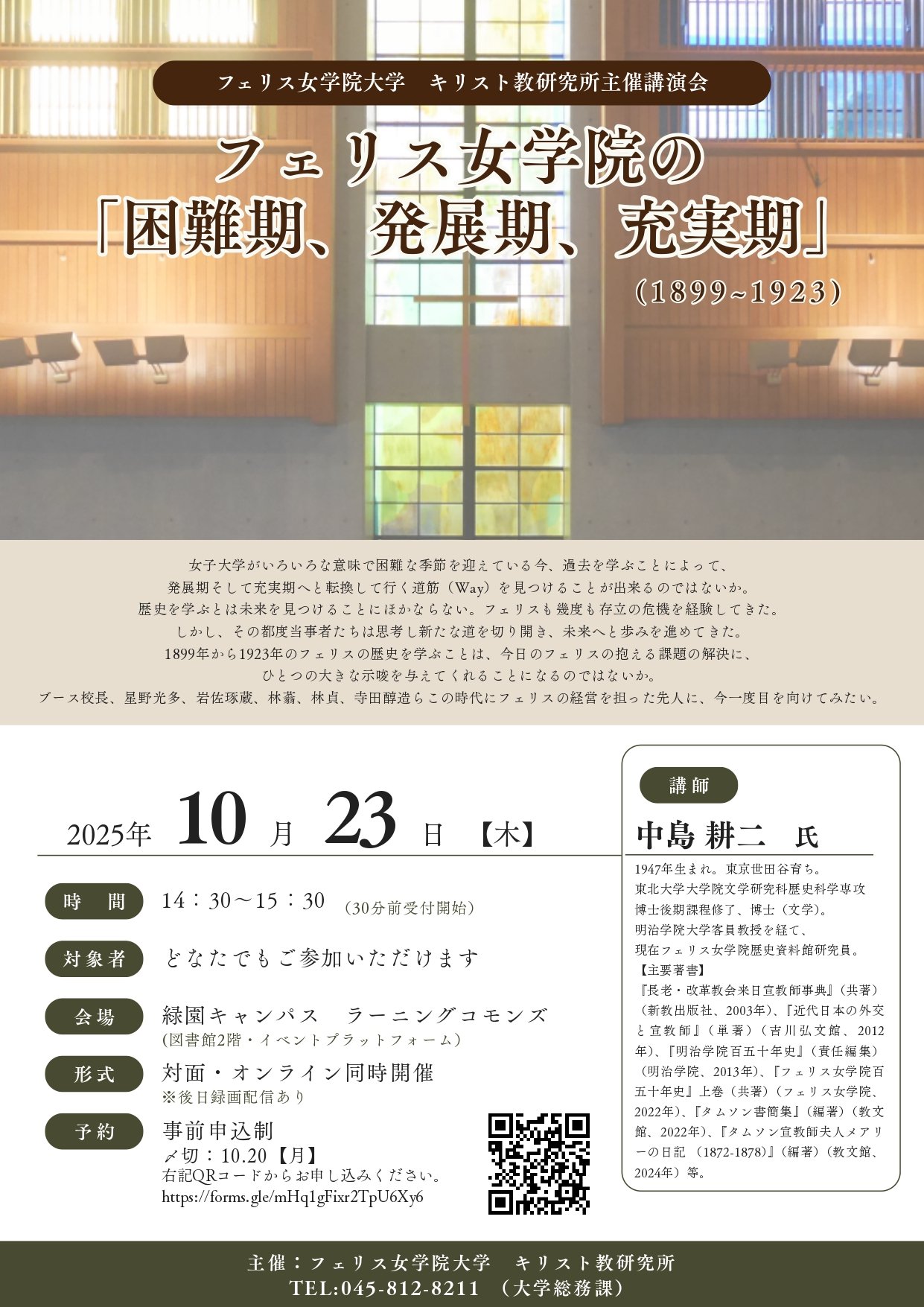イベントキリスト教研究所講演会 フェリス女学院の「困難期、発展期、充実期」(1899~1923)