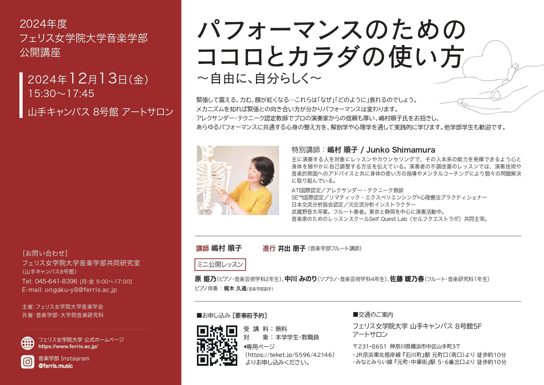 イベント【学内限定】2024年度音楽学部公開講座 パフォーマンスのためのココロとカラダの使い方 ~自由に、自分らしく~
