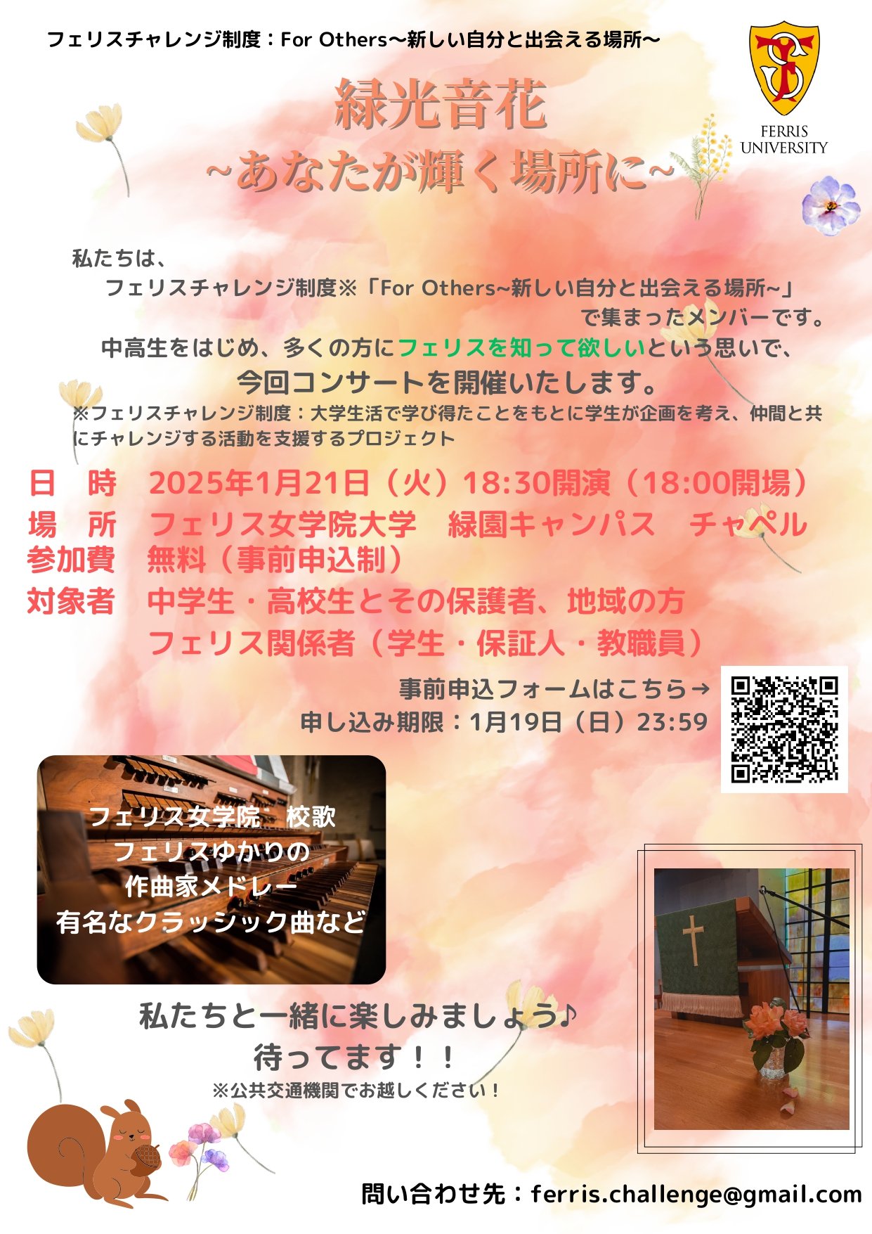 イベント【学生企画】コンサート「緑光音花(りょっこうおんか)〜あなたが輝く場所に〜」
