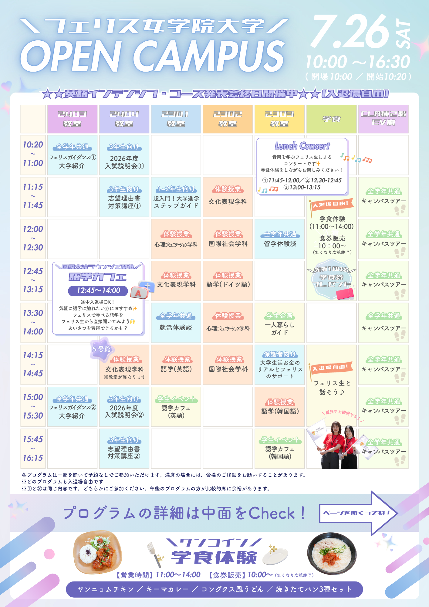 お知らせ【オープンキャンパス】7月26日(土)のプログラム詳細を公開しました★