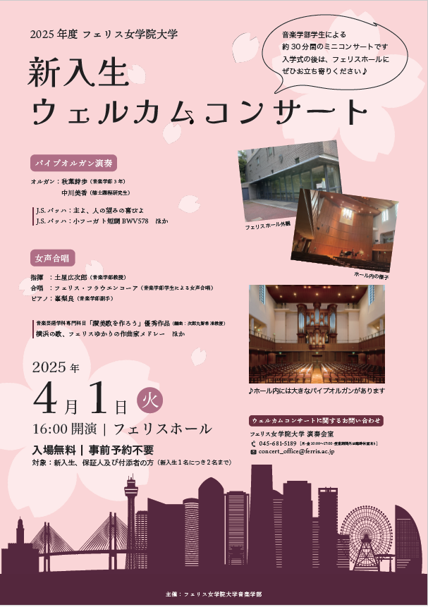 お知らせ「新入生ウェルカムコンサート」のお知らせ