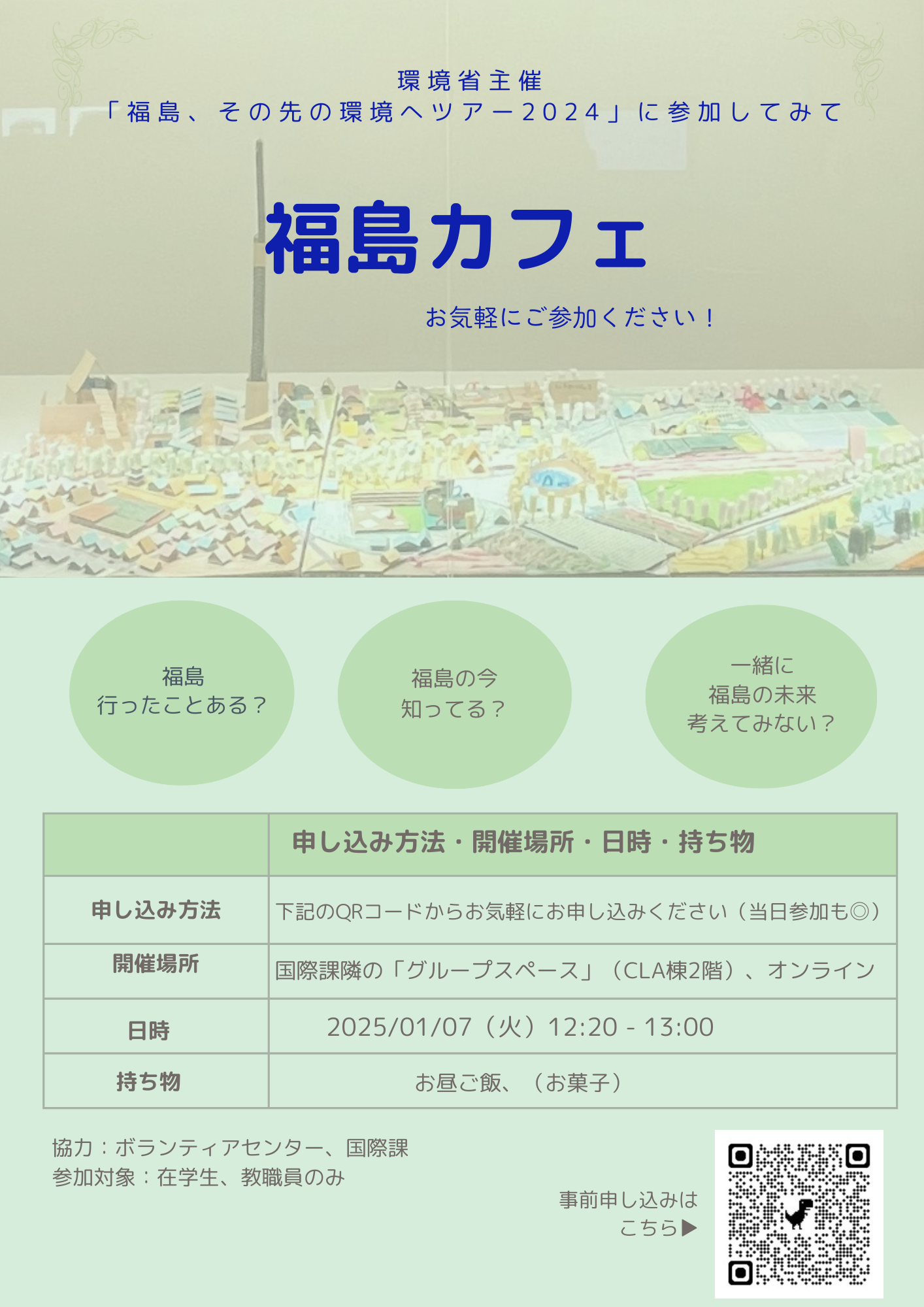 お知らせ環境省主催「福島、その先の環境へツアー2024」に参加した学生が学内で「福島カフェ」を開催